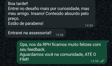 Hoje, eu ensino essa metodologia no Desafio Híbrido RPH — o primeiro passo pra você viver o mesmo tipo de transformação que eu conquistei.