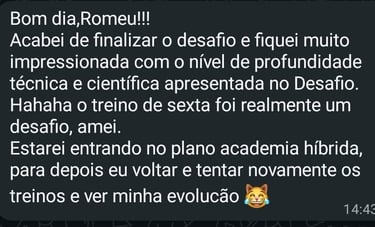 Além disso, recebe orientações práticas, uma aula didática sobre a ciência por trás do desafio híbrido, mostrando o porque é a metodologia mais eficiente para alcançar mudanças físicas e acesso vitalício ao material para refazer quantas vezes quiser.
